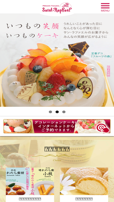 89%浜松市半田山の洋菓子店サン・ラファエルのサイトです。パティシエこだわりのケーキ、話題の『おかしなお菓子』、その他スイーツのご紹介。デコレーションケーキのご予約、インターネット通販なども行っております。