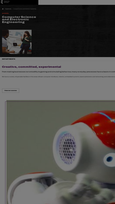 100%computer science studies at the university of essex. information about undergraduate, taught postgraduate and research degrees in computer science, e-commerce, embedded technology, internet computing and many more