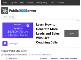 Public DNS Server List in Hong Kong. List is limited to 100 max ordered by reliability and query speed.