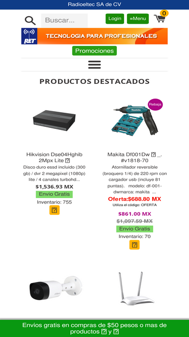 99%Tienda en Línea de equipos para Videovigilancia, Control de Acceso, Redes, Radiocomunicación, Detección de Incendios, IoT y GPS, envíamos a todo México.