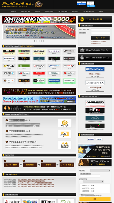 100%海外fxキャッシュバックサイトのfinalcashbackはfxやバイナリーオプションの取引に応じて現金をキャッシュバックする無料サービスです。海外fxの口座開設からメタトレーダーのご利用まで、海外fx・boの事なら何でもお任せ。34のfx業者と6のbo業者をそれぞれ、リベート率・スプレッド・サポートの質などで比較し、上位5つをランキングで紹介。キャッシュバックの見積もりが出来るほか、メールサポートも日本語なので安心して利用可能です。