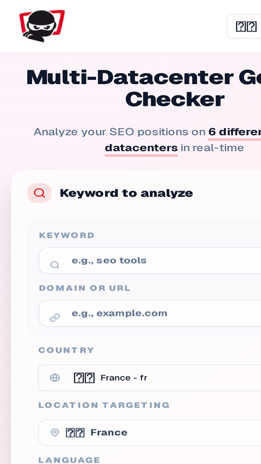 67%Free SEO rank checker. Verify your keyword positions across 6 different Google datacenters in real-time. Accurate and fast SERP tracking.