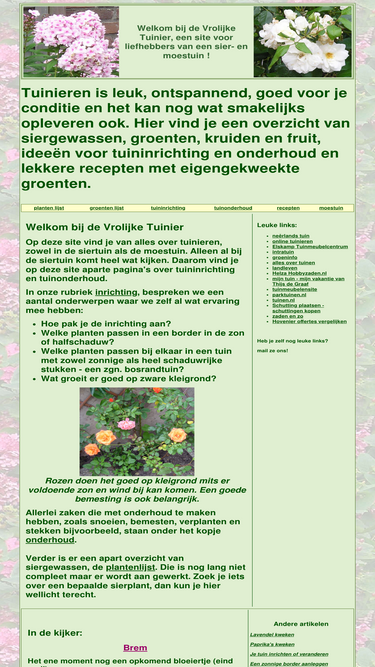 100%informatie en tip voor moes- en siertuin, voor kweken en verzorgen, tuininrichting en onderhoud, met planten - en groentenlijst en lekkere recepten.