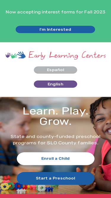 85%the early learning centers of san luis obispo county provide high-quality, no-cost, preschool services to families and children ages 3- 5 years old in slo county.