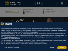 87%The Official Athletic Site of The Fighting Irish. The most comprehensive coverage of Notre Dame Athletics on the web with highlights, scores, game summaries, and rosters. Powered by WMT Digital.