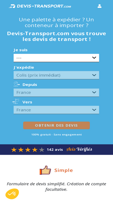 90%déposez votre demande de devis gratuitement et recevez des devis de transport routiers, maritimes et aériens en toute simplicité dans la journée.