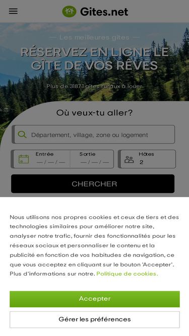 84%Les meilleures gîtes de charme et location de logements ruraux pour tes vacances. Réserve ton gîte en ligne et immerge toi dans le tourisme rural. Mets les filtres sur nos gîtes en les classant par avis, offres, caractéristiques et effectue ta réservation dès maintenant. Ça te plairait une escapade rural?