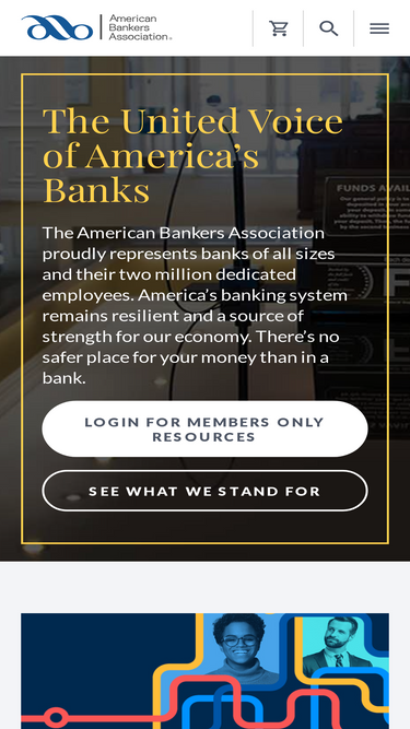 78%the american bankers association (aba) offers training, certification, news, research, advocacy, and community for bankers and members of the financial services industry.