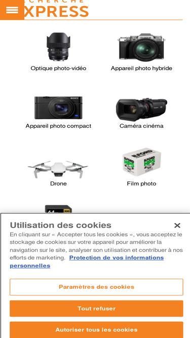 76%appareils photo / video numérique: objectifs reflex, optiques, apn, mémoire, studio, trépieds, bagagerie, énergie...