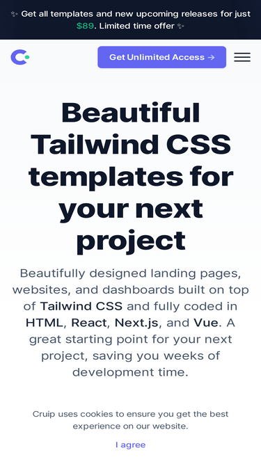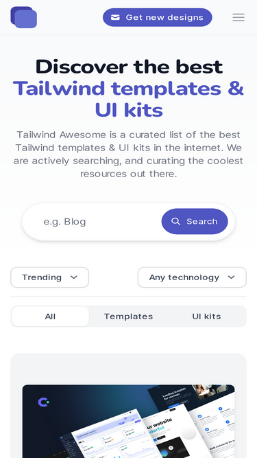 83%A curated directory of the best Tailwind templates and UI kits to kickstart your next design.