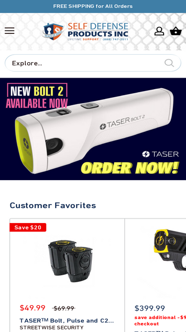 Retailer of self defense products including TASER, stun guns, flashlight stun guns, stun batons, pepper spray, and Mace. Authorized TASER Dealer.