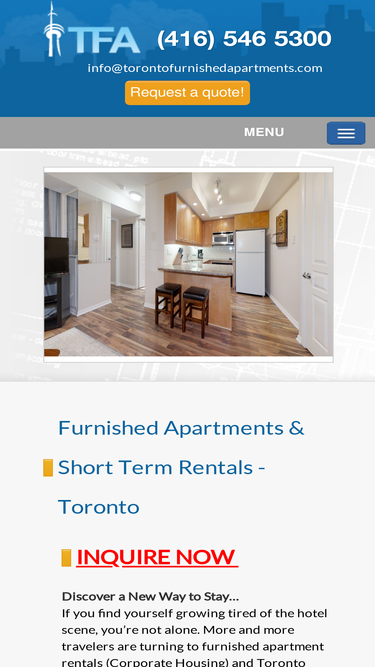 99%enjoy a quality, comfortable & affordable stay at our executive short term apartments & corporate housing. quality & comfort guaranteed. call now to book your stay! 416 546-5300