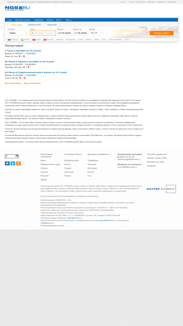 80%туристический портал нгс.туризм это банк путевок и горящих туров омска, собранный из предложений практически всех турфирм омска. здесь вы сможете найти дешевые туры в таиланд, турцию, европу от таких туроператоров как пегас туристик, тез тур, библио глобус, натали турс и много полезной информации о путешествиях.