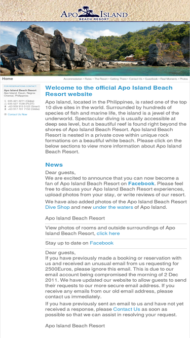 64%apo island beach resort is nested in a private cove within unique rock formations on the beautiful white beach of apo island.