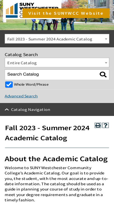 100%westchester community college’s acadmic catalog including course descriptions and academic program information