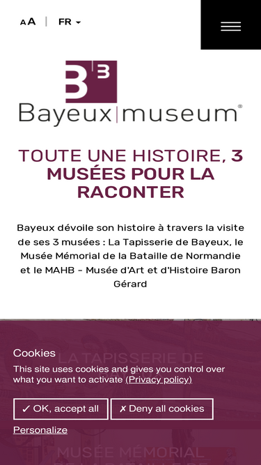 74%Prices and opening times to visit the Bayeux Tapestry Museum. The museum is open to the public 7/7 day from February 1st to December 31st. Duration of visit about 1h30. Audioguide with 16 languages.