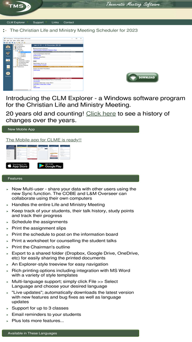 christian life and ministry meeting software. an easy to use windows program to schedule and manage the clm. prints schedules, assignent slips and worksheets. designed for the new 2016 life and ministry meeting.