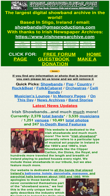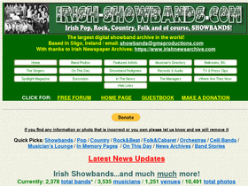 86%the most comprehensive collection of all the irish showbands that played ireland's ballrooms from 1950 to 1990s with a special focus on pop, rock and country bands from the 1970's and 1980's