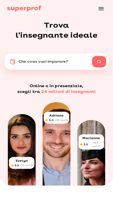 66%Trova il tuo insegnante per lezioni private personalizzate o di gruppo tra più di 1 000 000 profili. A domicilio, a casa dell'insegnante, in un'aula apposita oppure via webcam.