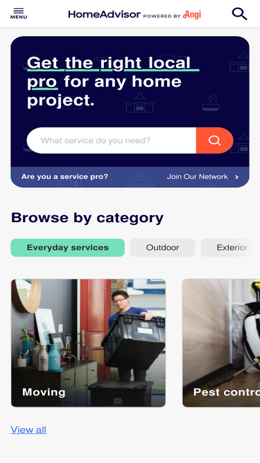 75%homeadvisor, powered by angi, is the simplest way to find and book top-rated local home services. connect with trusted home repair and improvement contractors including electricians, plumbers, painters, roofers, and more. read millions of reviews and get information about project costs. start your search with homeadvisor today.