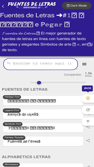 92%Conversor de Letras Bonitas Para copiar y pegar Conversor de fuentes de letras bonitas para IG, FB, twitter. letras bonitas para titulos, abecedario.