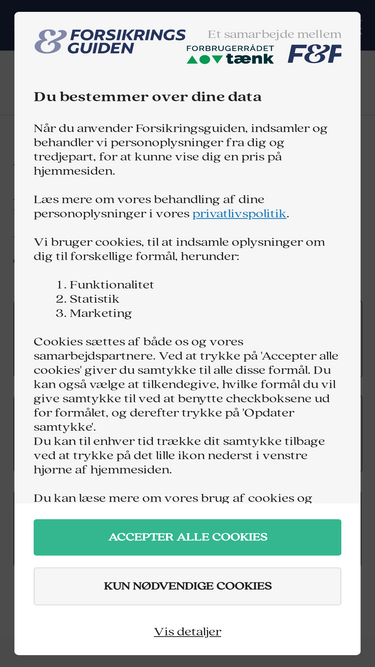79%Find den bedste forsikring til dit behov. Sammenlign priser og dækninger uvildigt på Forsikringsguiden.dk i samarbejde med Forbrugerrådet TÆNK.