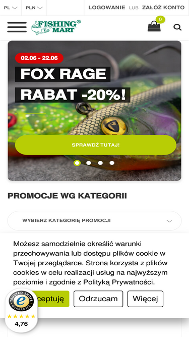 Ponad 60 000 produktów – Fishing-Mart to największy sklep wędkarski online. Wędki, przynęty, kołowrotki i akcesoria najlepszych marek. Super promocje!