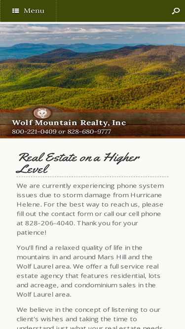 94%Wolf Mountain Realty Inc. specializes in Madison County NC real estate offering houses for sale in Mars Hill NC near Wold Mountain Ski Resort in Mars Hill North Carolina.