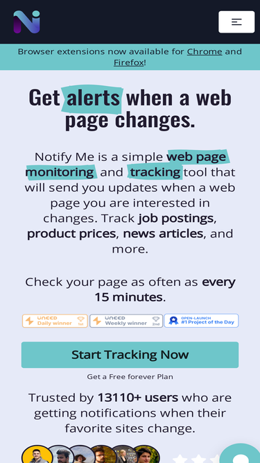98%Track website web-page changes and get instant notifications. An open-source alternative to Visualping and Distill.io. Monitor web page content, price changes, and availability updates with ease.