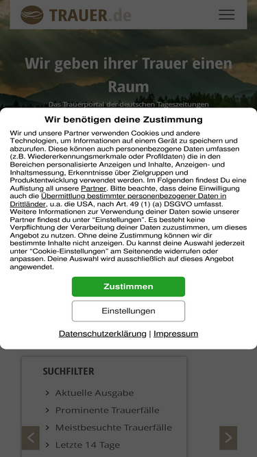 93%Finden Sie hier Traueranzeigen, Todesanzeigen und Beileidsbekundungen aus Ihrer Tageszeitung oder passende Hilfe im Trauerfall. Jetzt online gedenken.