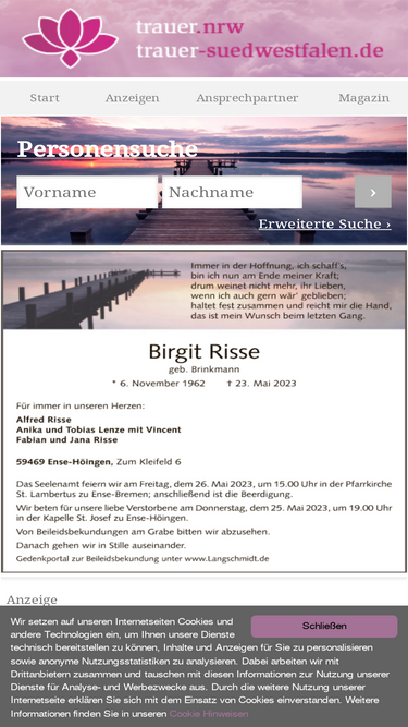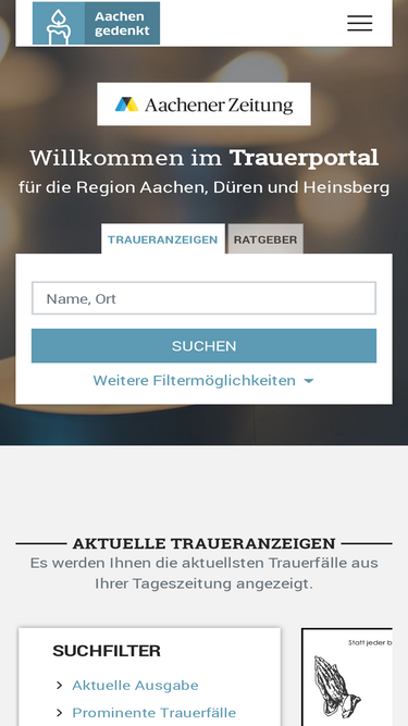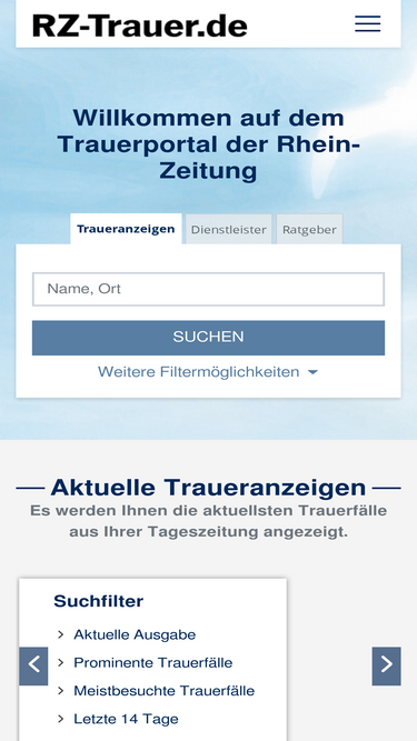 95%Finden Sie hier Traueranzeigen, Todesanzeigen und Beileidsbekundungen aus Ihrer Tageszeitung oder passende Hilfe im Trauerfall. Jetzt online gedenken.