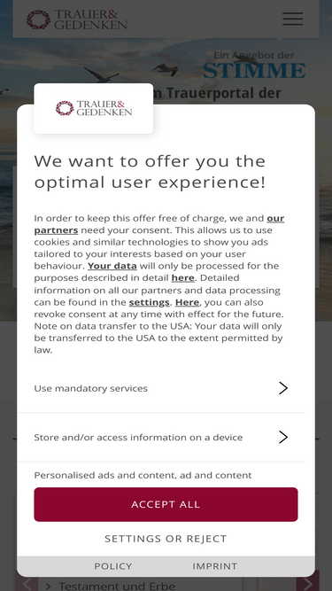 100%Finden Sie hier Traueranzeigen, Todesanzeigen und Beileidsbekundungen aus Ihrer Tageszeitung oder passende Hilfe im Trauerfall. Jetzt online gedenken.