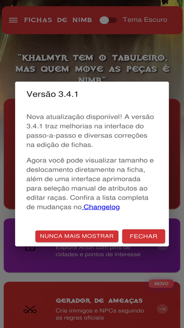 76%Plataforma completa para Tormenta 20: gerador de fichas, criador de itens superiores e mágicos, rolador de recompensas, enciclopédia e muito mais. Crie personagens, NPCs, equipamentos únicos e consulte regras - tudo offline e seguindo as regras oficiais do RPG.