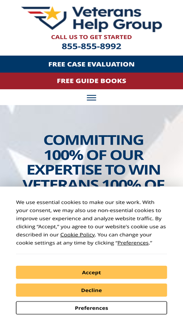 97%At VA Disability Group, our veterans’ benefits and claims attorneys can help with disability compensation & pension, discharge upgrades and more! Free Consultations!