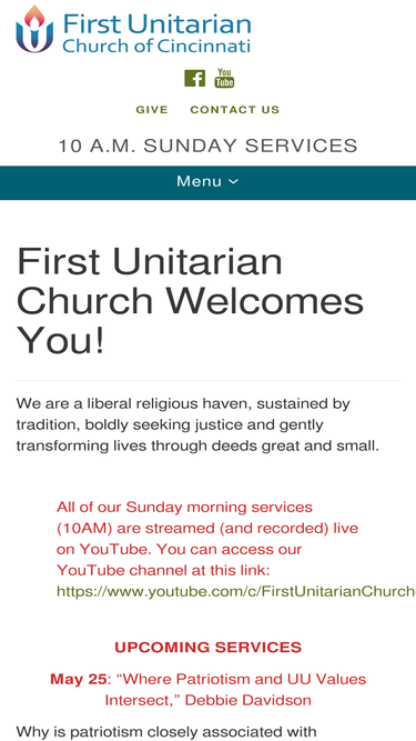 100%We are a caring Unitarian Universalist community in the centrally located Avondale neighborhood of Cincinnati. We meet in a warm and graceful building, built circa 1889, for worship services that...