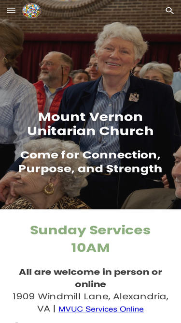 96%Directions to Mount Vernon Unitarian Church, located at 1909 Windmill Lane, Alexandria, VA 22307