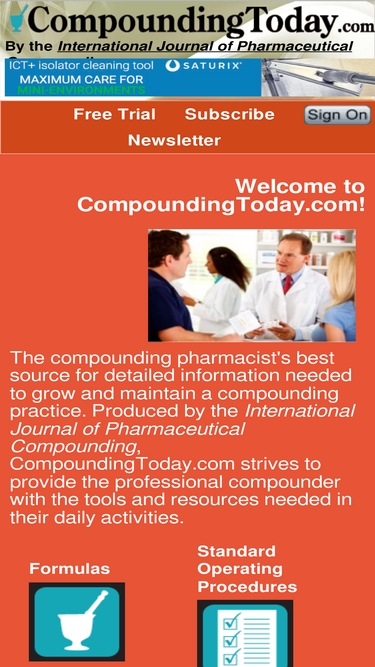 Compounding Today - Pharmacy Compounding Abstracts, Pharmacy Formulas, Discontinued Medications, Medicine Flavoring, Pharmacy Operating Procedures, and more.