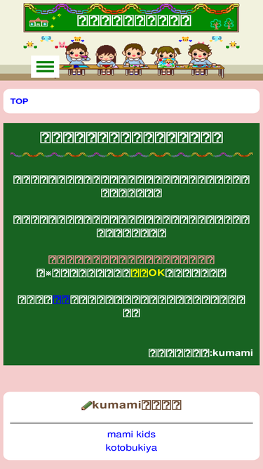92%web素材「まてりある幼稚園」の管理人kumamiについて。と、「まてりある幼稚園」についての説明を書いているページです。