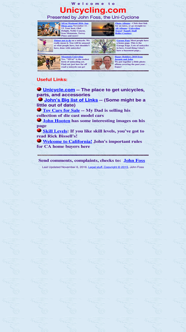 john foss shows off the world of unicycling with lots of photos, information, and fun. home of the ca mountain unicycle weekend. roller coaster photos also found here.