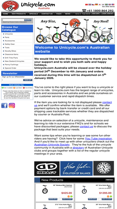 73%The UK’s number one online Unicycle shop. Buy Unicycles, Accessories and spares. Unicycles sold by unicyclists. Buy from the experts.