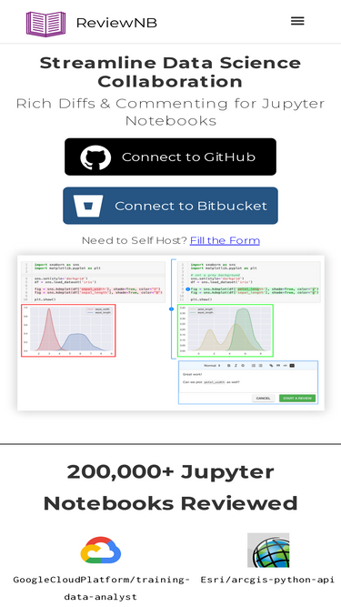 60%Join 1000+ companies like Amazon, Microsoft, Lyft, Deloitte, AirBnB trusting ReviewNB to streamline their Data Science workflow. We enable Code Reviews & Collaboration for Jupyter Notebooks.