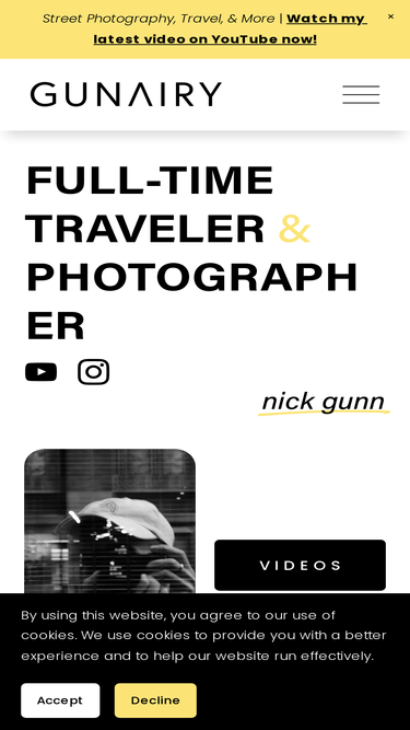 81%Nick Gunn is a full-time traveler, Fujifilm street photographer, and filmmaker. His work is ever-changing, but primarily inspired by cinema.