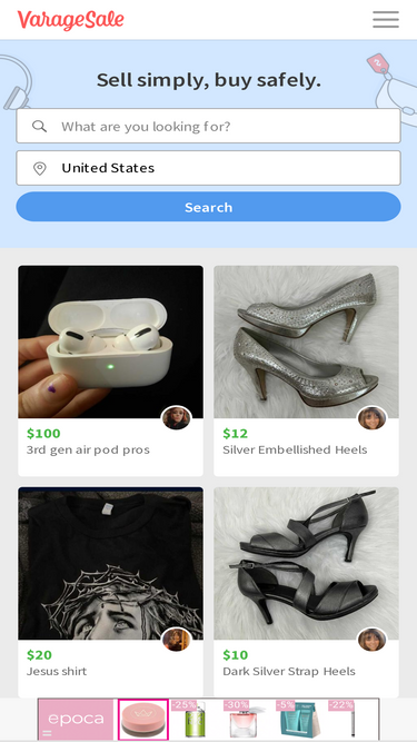93%VarageSale is the safer way to buy and sell secondhand items with verified local people.