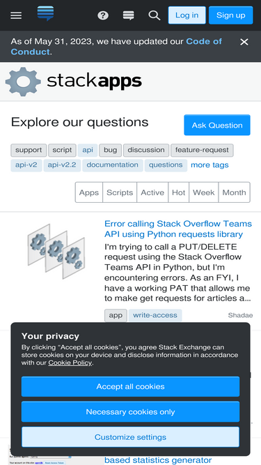 95%Q&A for apps, scripts, and development with the Stack Exchange API