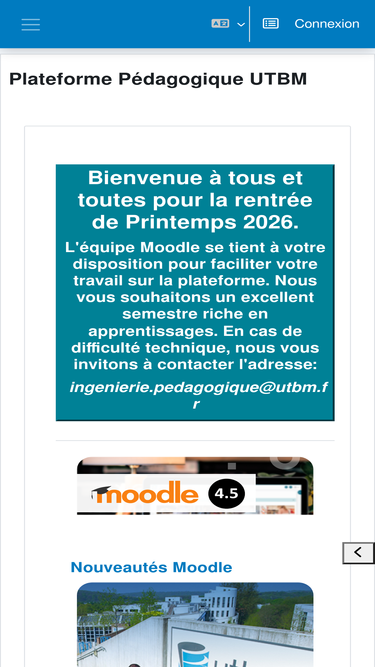 bienvenue sur le site moodle de l'utbmsi vous avez des questions, contactez ingenierie.pedagogique@utbm.fr