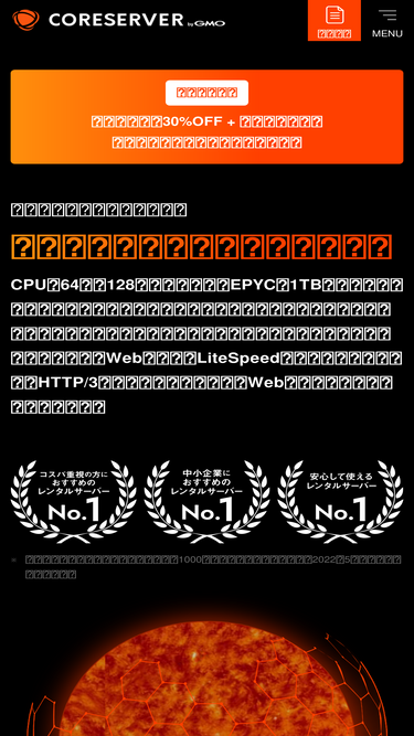 100%高速・高安定・大容量のレンタルサーバー「コアサーバー」。全プラン転送量無制限、高速SSD、無料SSL、WordPressインストール対応!さらにサポートも充実。30日間の無料お試し期間があるので、個人から法人まで安心してお使いいただけます。