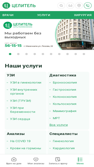 79%официальный сайт медицинского центра «целитель». частная клиника оказывает высококвалифицированную медицинскую помощь по всем направлениям. мы работаем в махачкале, дербенте, каспийске и хасавюрте. запись по телефону: 8 (872) 221-50-39