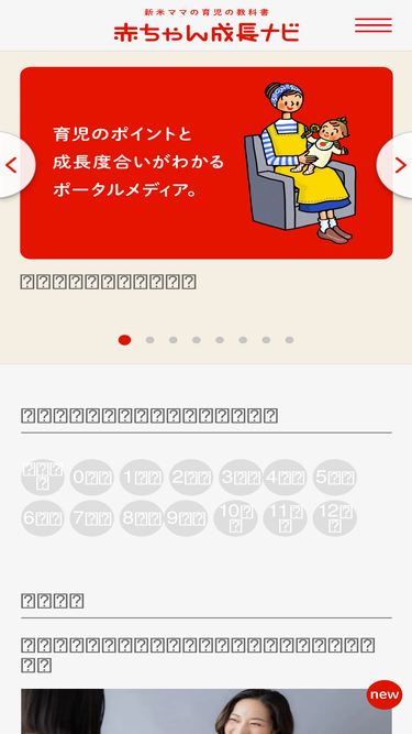 60%赤ちゃん成長ナビは、生後まもなく~1歳になるまでの赤ちゃんの月齢別の成長度合いと育児ポイントを紹介しています。安心して赤ちゃんと向き合うお手伝いをします。