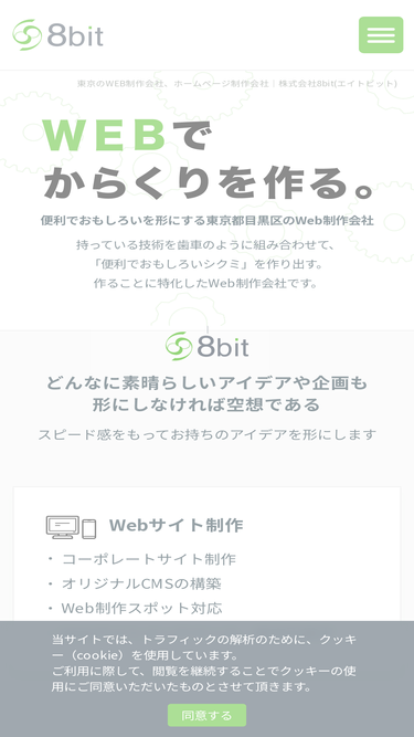 77%株式会社8bitは東京のweb制作、ホームページ制作会社、システム開発会社です。仕組み作りが強みであり、wordpressとシステム開発を組み合わせたweb制作を得意としています。