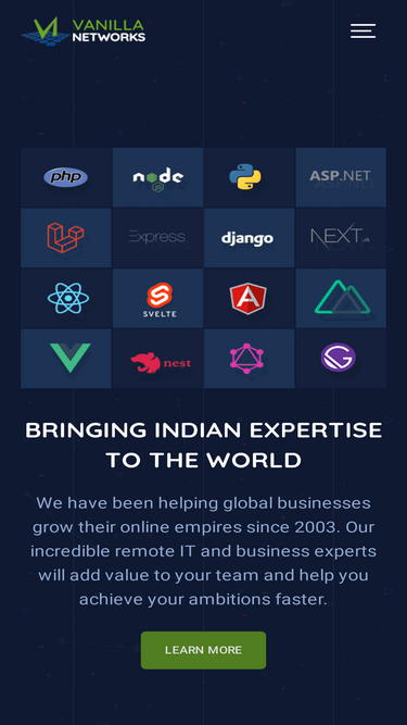 75%established in 2003, vanilla networks pvt ltd is a trusted outsourcing provider specialising in web and mobile development, web and ui design, system administration, web hosting support and more.